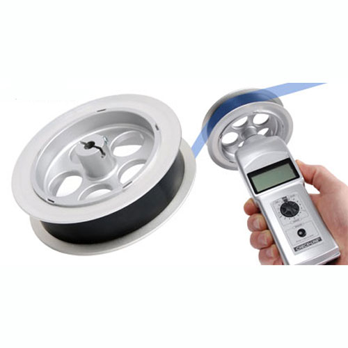 Employing a non slip rubber contact surface, the wheel adds safety and accuracy while measuring speeds on Elevator governor cables, wire and cable reels, extruded tubing and many other applications